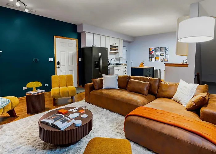 The spacious 1000 m² Pool Table, Pingpong, Arcade, 2-Car Parking, 3 Floors Apartment Chicago is situated in the West Town district of Chicago, merely 6 minutes' walk from the Cermak Produce. Wi-Fi is provided for both business and leisure activities.